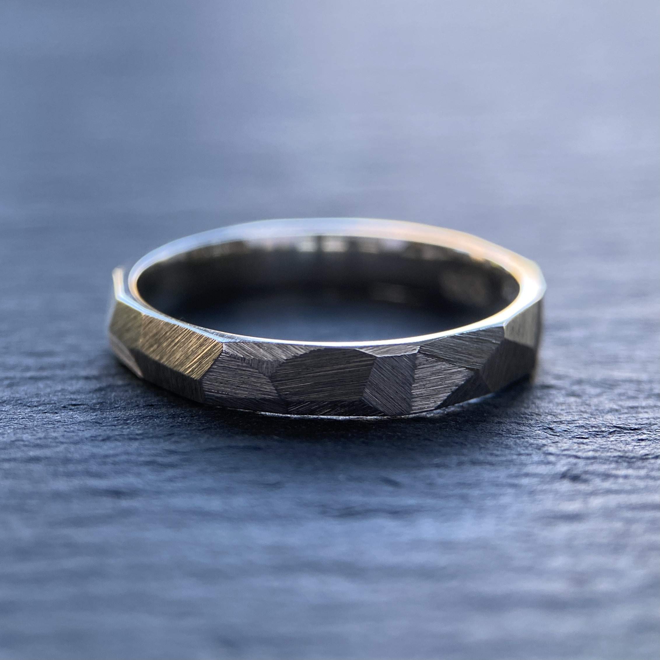 Faceted Argentium Silver Ring 3mm Slim Textured Band 935 Etsy India